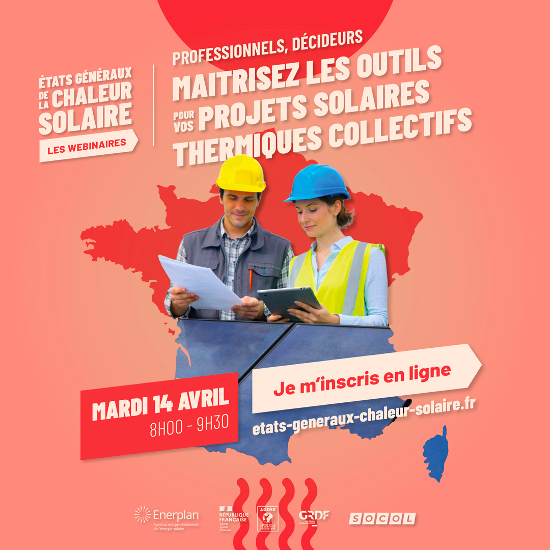 14 avril 2026 de 8h à 9h30 : Découvrez et approfondissez vos connaissances des outils d’aide aux projets solaires thermiques collectifs