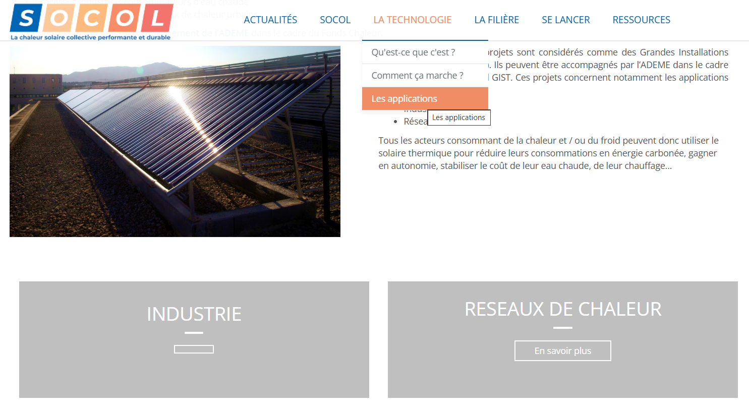 Retrouvez sur le site SOCOL, une nouvelle page sur les réseaux de chaleur solaire, intégrant de nombreux outils : guides techniques, études d'opportunité, retours d'expérience.